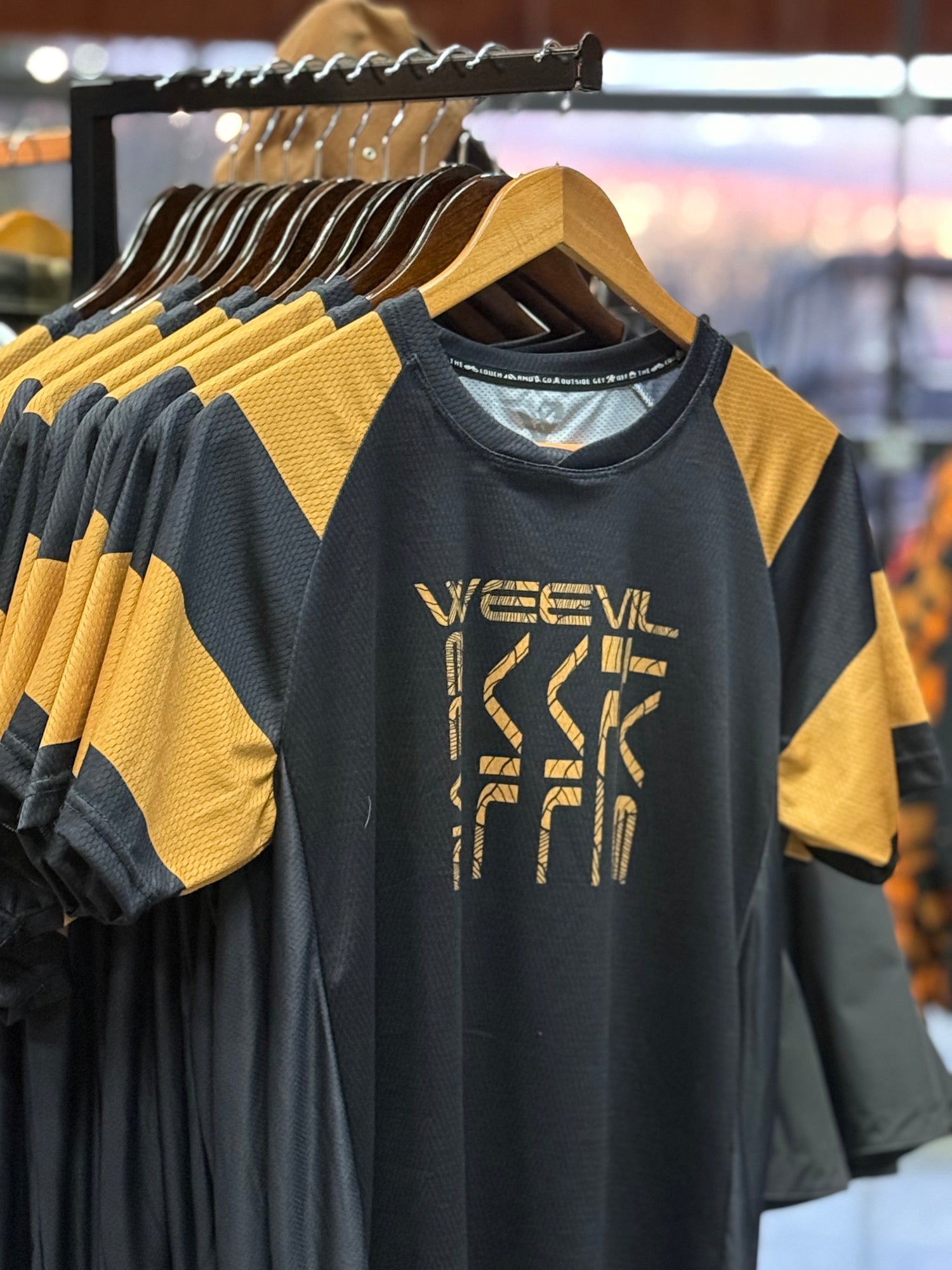 Ready for all-day rides, rowdy descents, or sweaty hike-a-bikes? Meet your new go-to: the Weevil MTB Jersey. Designed and trail-tested right here in North Carolina, this jersey is built from ultra-light recycled polyester with breathable mesh side panels to keep you cool when the trail gets spicy.